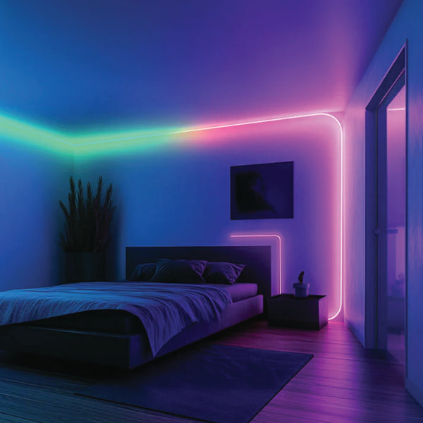 RGBW, Side bending, dimmable 5 meter LED strip made up of silicone and FPC. 24V constant voltage driver required. Max. length 16m from driver.